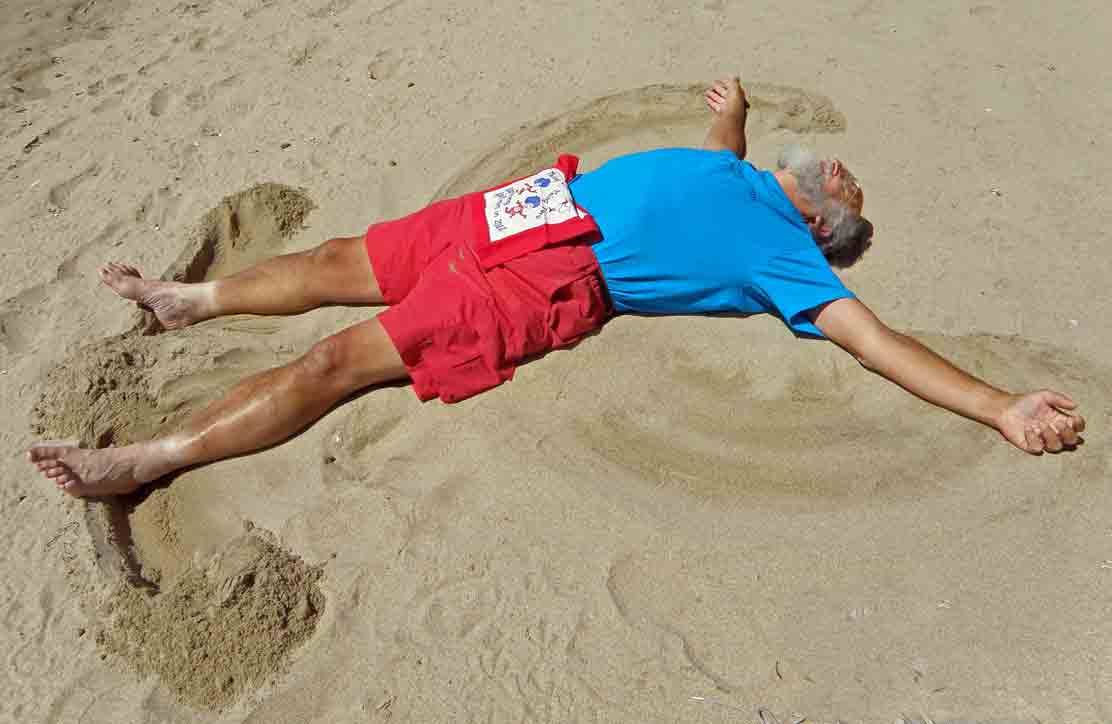 Description:We talked some amongst ourselves. Is this adventure really for a snow angel and got carried away with all of the beach sand? Would our fine friends at Capture California accept a snow angel for a sand angel. So being somewhat related to a chicken, Thing One took the easy way out and create a sand angel to compliment the Cat In The Hat's snow angel. Now if you were to compare the various angels, you will see the relief Thing One has that Capture California only judges on completion of an adventure and not the artistic quality of the art work.
